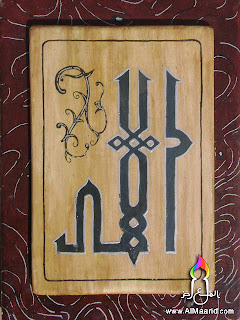 كلمة الجلال "الله" بالخط الكوفي المظفر, ملونة بمسحوق الجوز على الخشب.
