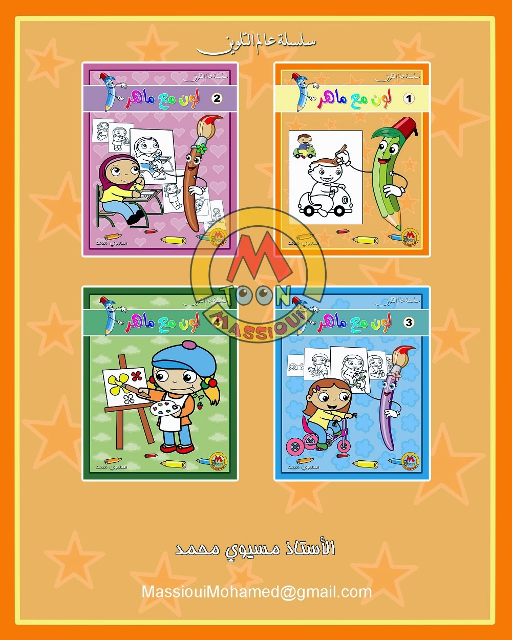 بعد تجربتي المتواضعة في تاليف قصص الاطفال عدت الى عالم الرسم الطفولي بسلسلة كتب تلوين مكونة من اربعة اجزاء كل واحد مكون تقريبا من عشر صفحات، مواضيع الرسومات كلها مأخوذة منة عالم الطفل،مثل البيت، المدرسة، الحديقة، الاصدقاء، الحيوانات... من الناحية الفنية الرسومات بسيطة جدا لذلك فهي موجهة للاطفال الذين اعمارهم بين ثلاث وسبع سنوات، اعتقد ان الطفل سيستمتع كثيرا بها اثناء وبعد التلوين.